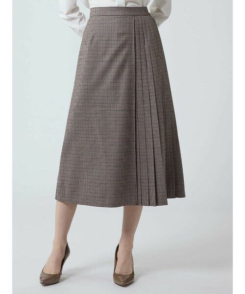 サイドに施したプリーツや長めのレングスで、新しいスーツスタイルを叶えてくれるスカート。