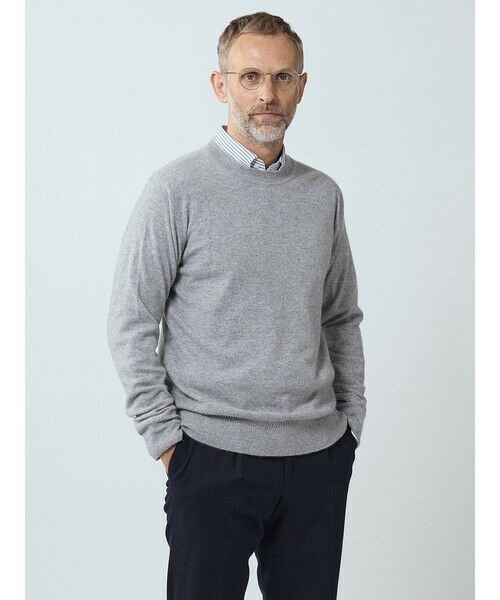 モノトーンで表現したモダンな雰囲気が好印象のカシミア素材を用いたクルーネックセーターです。 近年のミニマルスタイルの隆盛から、ハイブランドでも数多くリリースされているクルーのセーター。名品も多いこのジャンルに、アクアスキュータムでは素材にこだわった一枚をご提案。 ロイヤルカシミヤ糸と呼ばれる、原産地の内モンゴルで厳選された原毛から紡がれるカシミヤ糸を使用し、それを密に織り上げる事で丈夫なカシミヤニットを仕上げました。 カシミヤのような繊細な原料からなる衣服は本来、密に編み込まれることで暖かさと丈夫さ、軽さなどを両立できる点が大きな魅力です。しかし、近年は原材料価格の高騰から、なるべく糸を少なく、甘く編み込まれたカシミヤ製品が、軽さだけを売りにして販売されている姿をしばしば見かけます。 カシミヤの魅力を最大限に生かすことを試みたこちらの製品は、触り心地の滑らかさの中に、確かな丈夫さを感じる事も出来る一着に仕上がりました。