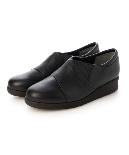 シューズとはまた違った中深のパンプス顔のアッパーラインは、通勤などのONシーンにも使いやすいデザインでボトムスを選びません。