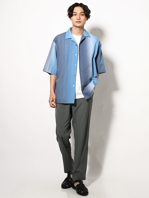 トレンドのグラデーション柄プリントを施したオープンカラ—シャツ。