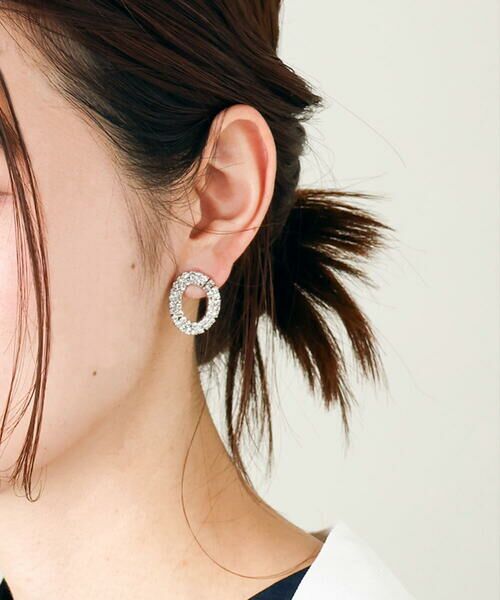 小粒なストーンがキラキラと輝く華やかな印象を与えてくれるピアスです。