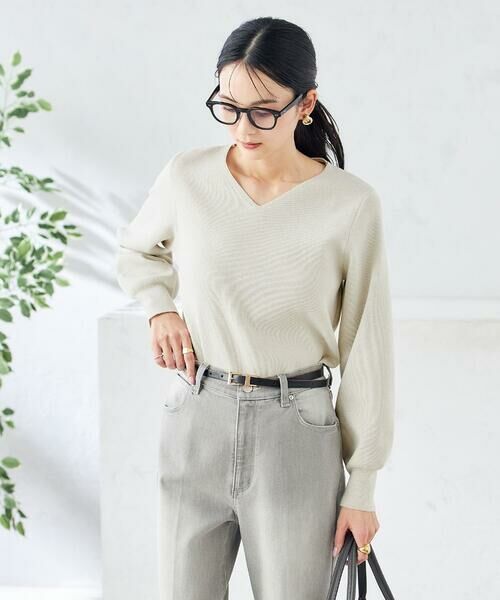 ◆WEB限定Vネックパフスリーブニット:K2FEA79039