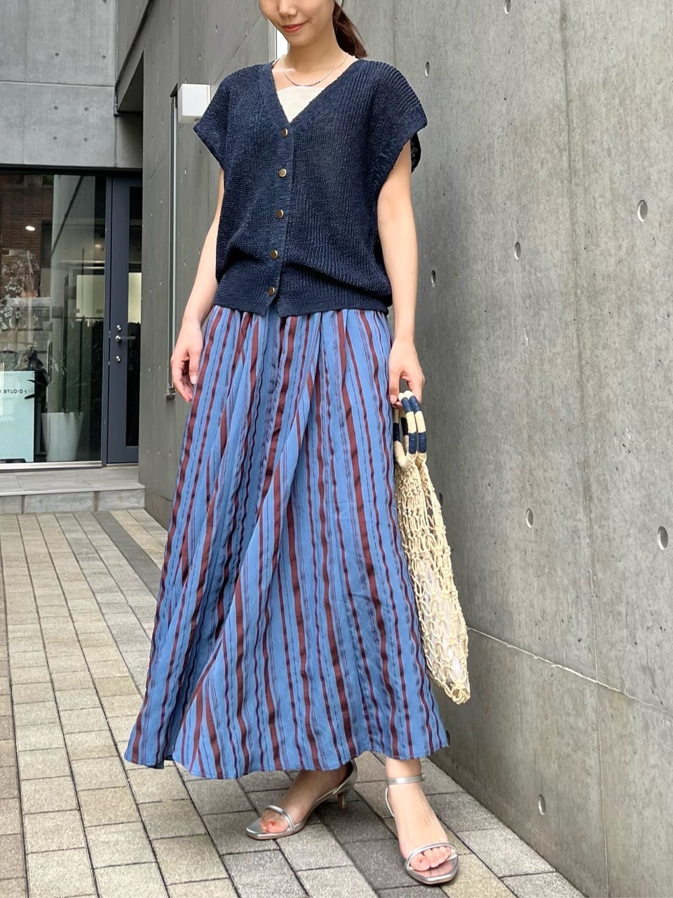 メッシュニットや短丈トップスと合わせたレイヤードスタイルがおすすめ。