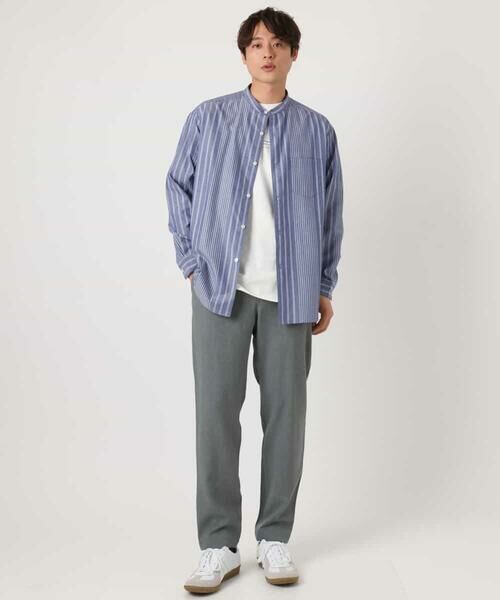 【春の新作】ツイルワイドシルエットバンドカラーシャツ