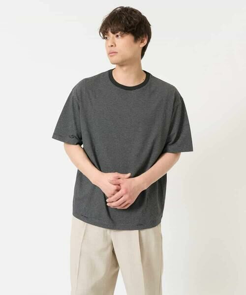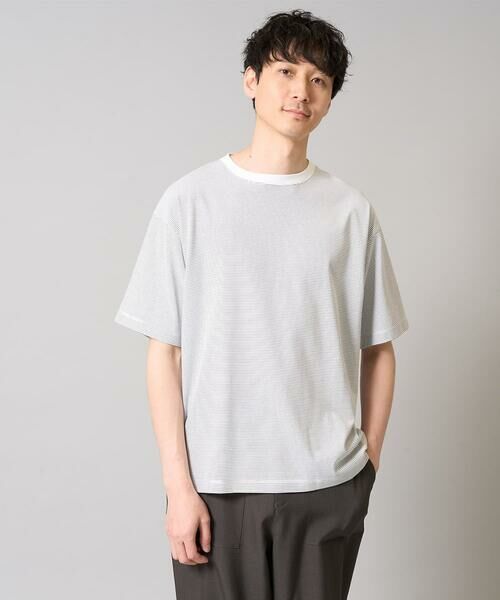 カジュアル過ぎないクリーンな印象の細ボーダーカットソー。