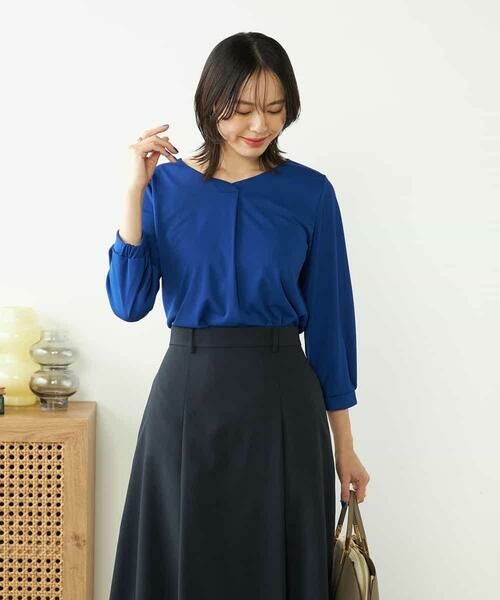 ・楽な着心地のカットソーながらブラウスライクデザインできちんと見え