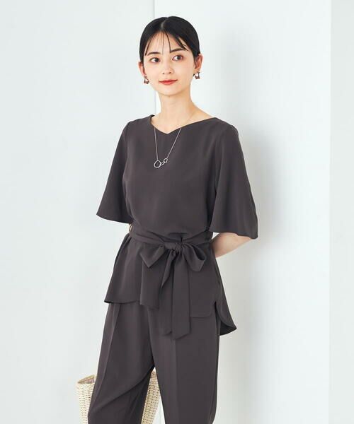 ・同素材のサッシュベルトでウエストマークしてさらにすっきり見え
