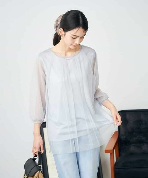 ・カットソーにチュールを重ねたブラウスライクなカットソー