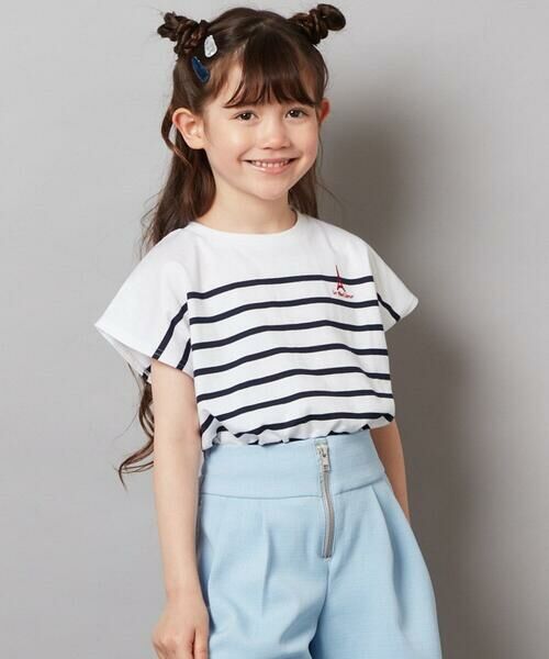 ・ネイビーのボーダーに赤いエッフェル塔の刺繍がおしゃれ!トリコロールカラーが暑い夏をさわやかに演出してくれるアイテム。