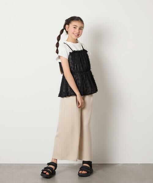 ・シンプルTシャツに、今季トレンドのフェザーチュールシフォン素材を使用したキャミをドッキング。