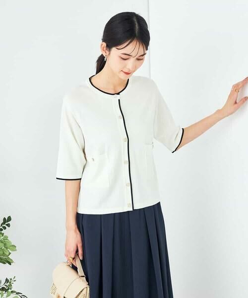 ・バイカラーが今年らしいジャケットライクなカーディガン