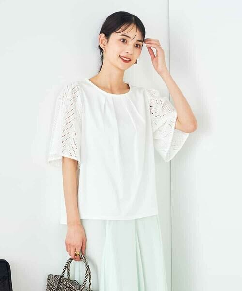 袖のレースと同素材を使用したスカート(K2HGA26059)とのセットアップ着用がおすすめ。