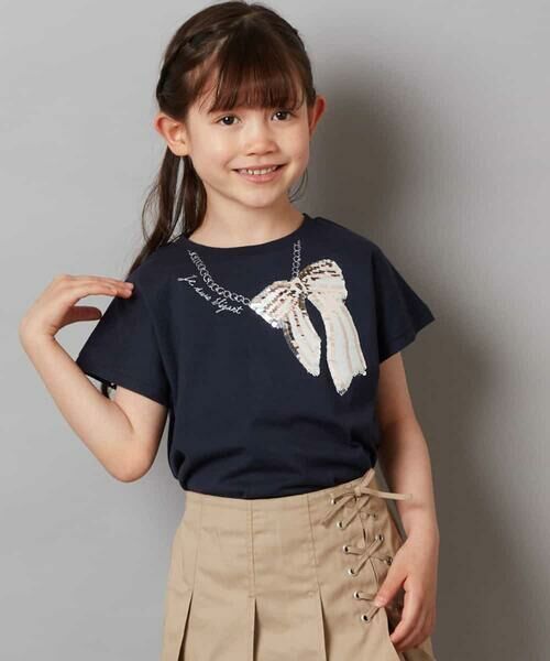 ・スパンコールをなでると色が変わる人気の半袖Tシャツ。