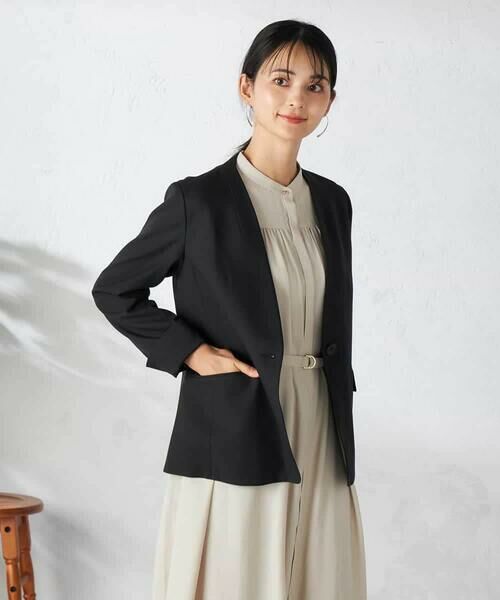 a.v.v / アー・ヴェ・ヴェ ノーカラージャケット | 【洗える/イージーケア/吸水速乾/ストレッチ】梳毛調Vネックジャケット(ダークグレー)