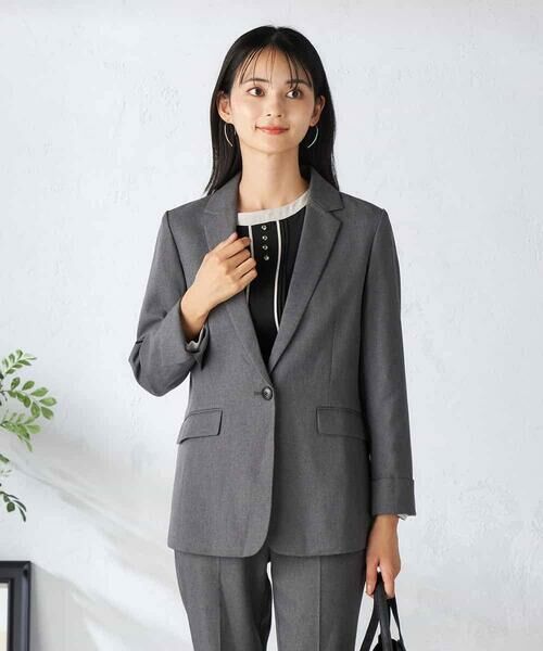 a.v.v / アー・ヴェ・ヴェ テーラードジャケット | 【洗える/イージーケア/吸水速乾/ストレッチ】梳毛調テーラードジャケット(ダークグレー)