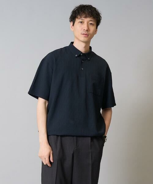 ◆夏に嬉しいシアサッカー素材を使用したワイドシルエットポロシャツ◆