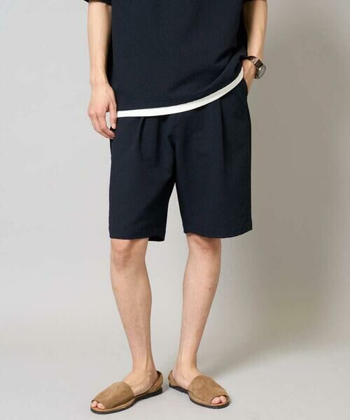 ストレッチの効いた薄手のシアサッカー素材を使用した、ワンタック入りハーフパンツ。