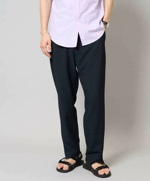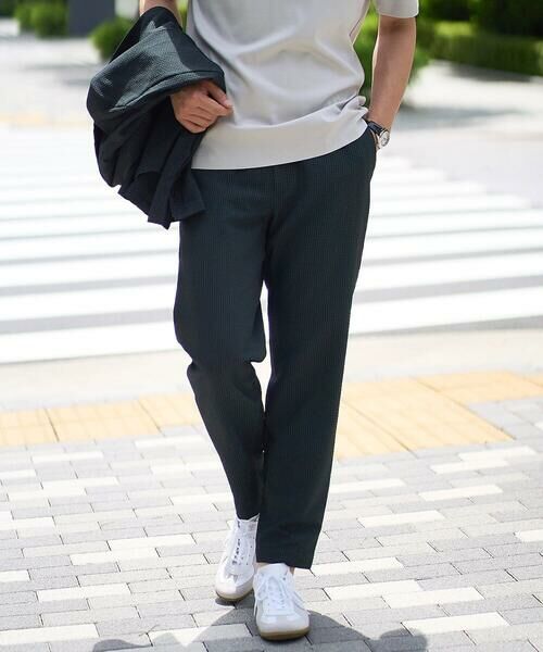 ストレッチの効いた薄手のシアサッカー素材を使用した、きれいめリラックスで大人見えするテーパードパンツ。