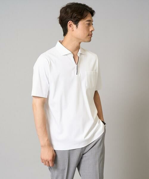 ◆【接触冷感/UVカット/毛玉になりにくい】毎日を快適に過ごせる多機能素材を使用したオンオフ兼用スキッパーポロシャツ。◆