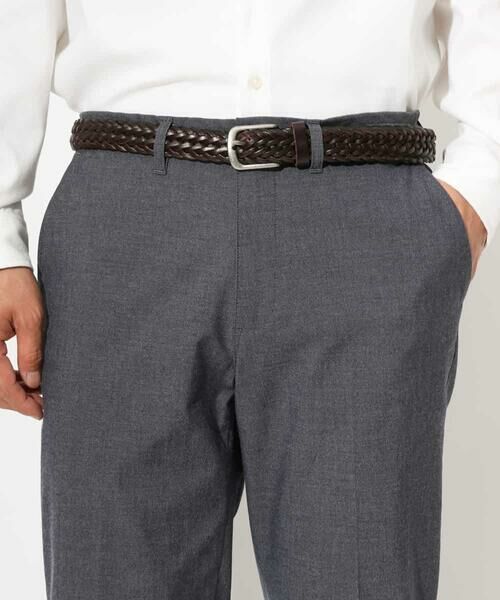 編み込みメッシュ素材で自由に留め位置を調整できるビジネスからカジュアルまで守備範囲の広レザーベルトベルトです。細かめな編み柄が上品な雰囲気になり、スラックスパンツからカジュアルパンツにまで対応できます。\t\t\t\t\t