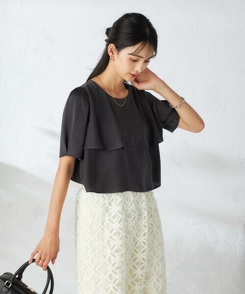【接触冷感/UVカット/吸水速乾/イージーケア】サテンティアードブラウス