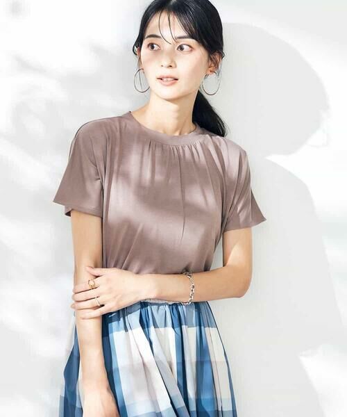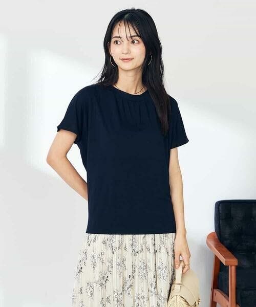 【接触冷感/速乾/UVカット】ギャザーネックフレンチスリーブカットソー