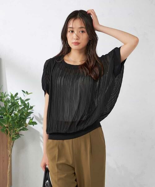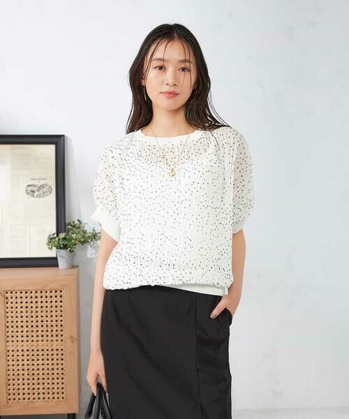 ・薄手の楊柳にドットプリントを施しプリーツ加工を施した価値観のある一枚
