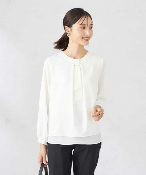 ・ボウタイは内側に収納できるのでシンプルなブラウスとしても着用可