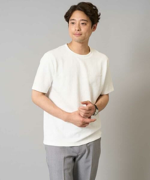 素材感を活かしたクルーネックデザインで、汎用性抜群です。