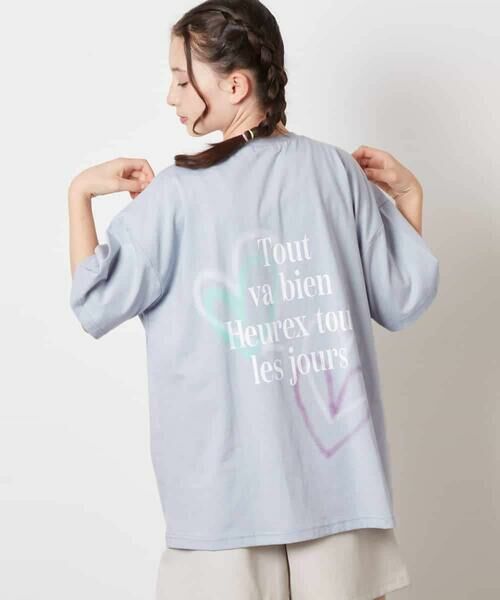 ・フロントはシンプルなロゴプリント、バックにはインパクトのあるロゴとスプレーアート風のプリントがおしゃれ。後ろ姿も印象的に。