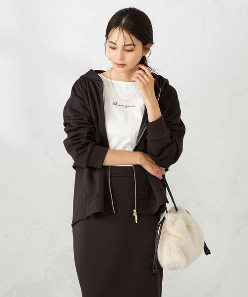 同素材スカートとのセットアップ着用も大人カジュアルに仕上がります。