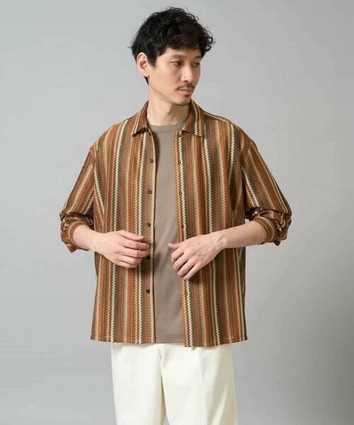 インパクトのあるストライプ柄で羽織るだけで主役級の存在感があるアイテムです。