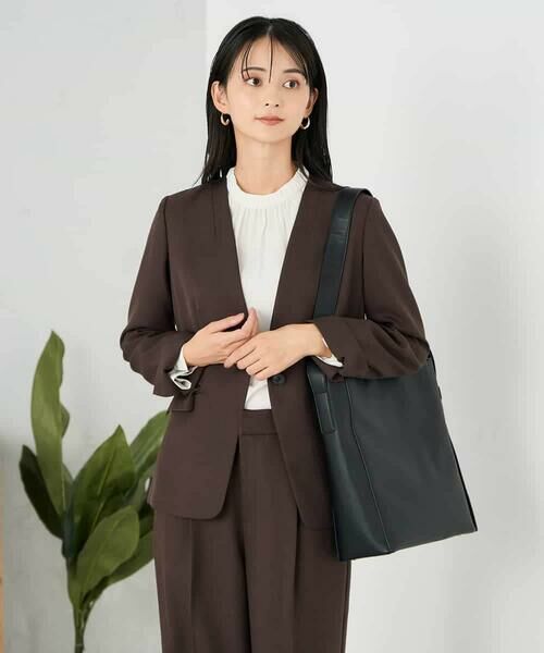 同素材ボトムとのセットアップ着用できれいめお仕事スタイルが完成。