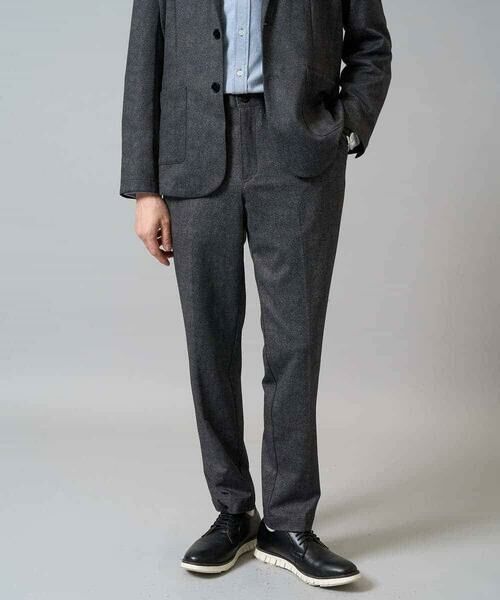 同素材で展開しているジャケットとのセットアップスタイルが、ビジネスシーンにおすすめ。