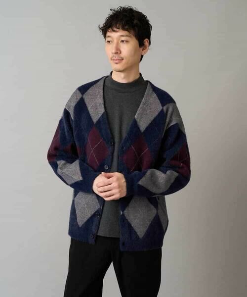 ◆今季トレンド! 毛足のあるシャギー糸を使用したアーガイル柄カーディガン◆