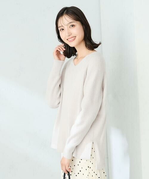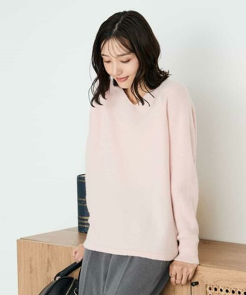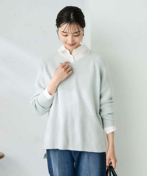 デイリーに使えるきれいめカジュアルニットなので、ワイドパンツやデニム合わせも決まります。