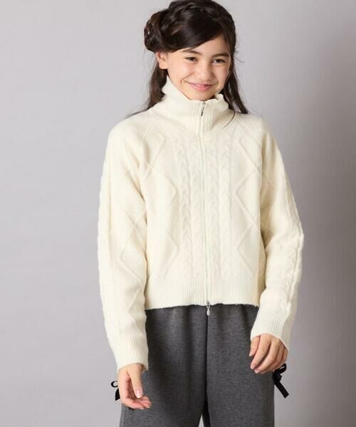 ・トレンドのダブルジップがかわいい、ケーブル編みニット。
