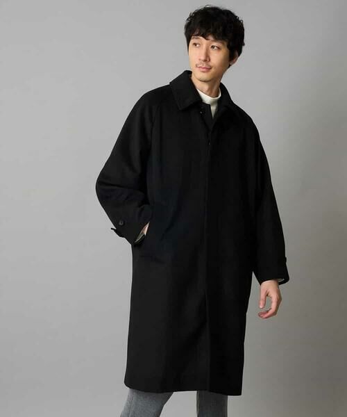 ビーバー加工を施した生地が高見えするワイドシルエットステンカラーコート。