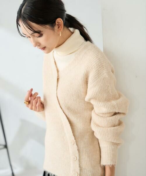 ハイネックトップスをレイヤードしたスタイリングもおすすめ。