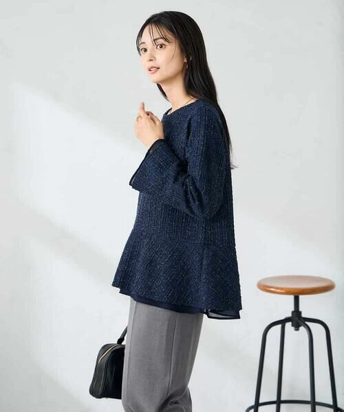 a.v.v / アー・ヴェ・ヴェ カットソー | ツイードペプラムトップス(ネイビー)