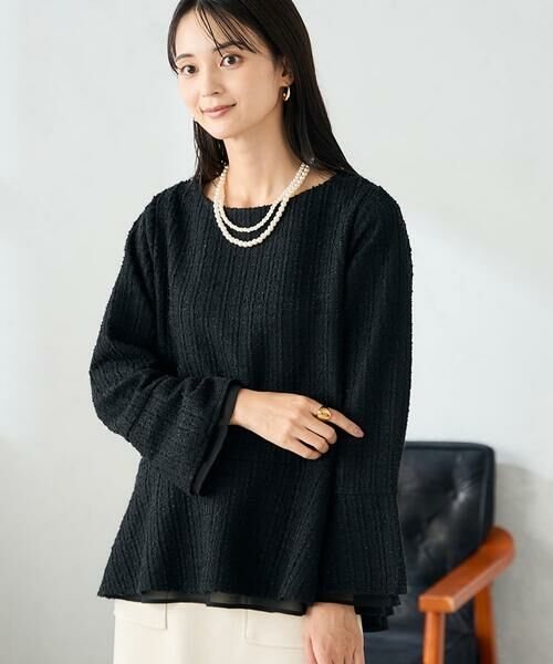 ・伸縮性のあるラメ入りツイード素材のペプラムトップス
