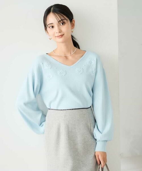 ・フラットな表面感のシンプルニットの胸元に同色の刺繍を施しました