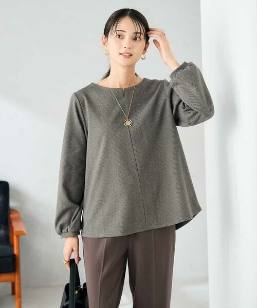 ・カットソー素材の伸縮性がある千鳥ジャガードのプルオーバー