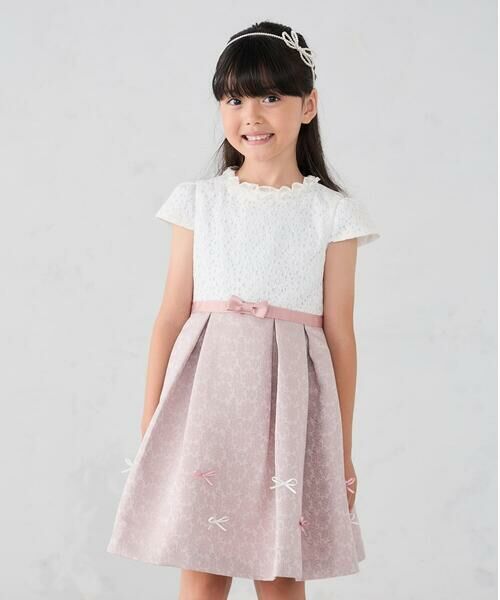 ・レースの身頃と高見えするジャガード生地のスカートの組み合わせが華やかなワンピース。