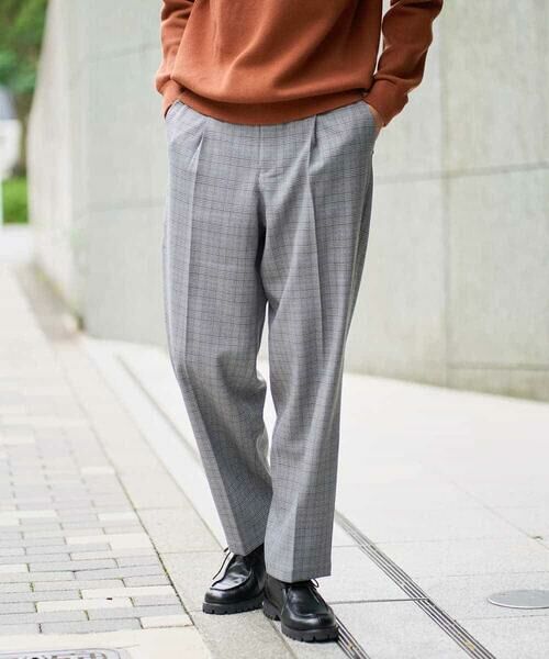 ◆高機能素材を使用したクラシックなチェック柄のワイドスラックス◆
