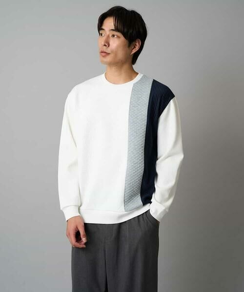 ◆前身頃に凹凸感のあるジャカード素材を取り入れた切替えデザインカットソー◆