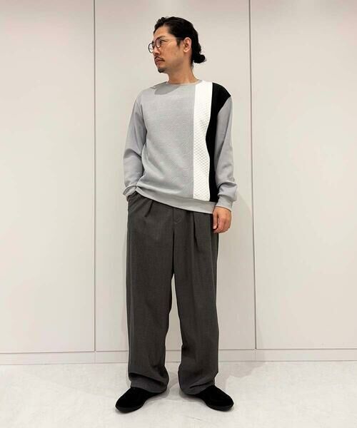 ボトムははきれい目スタイルであればスラックス合わせ、カジュアルスタイルであればタック入りなどのゆとりのあるパンツとあわせるとバランスが良いコーディネートができます。