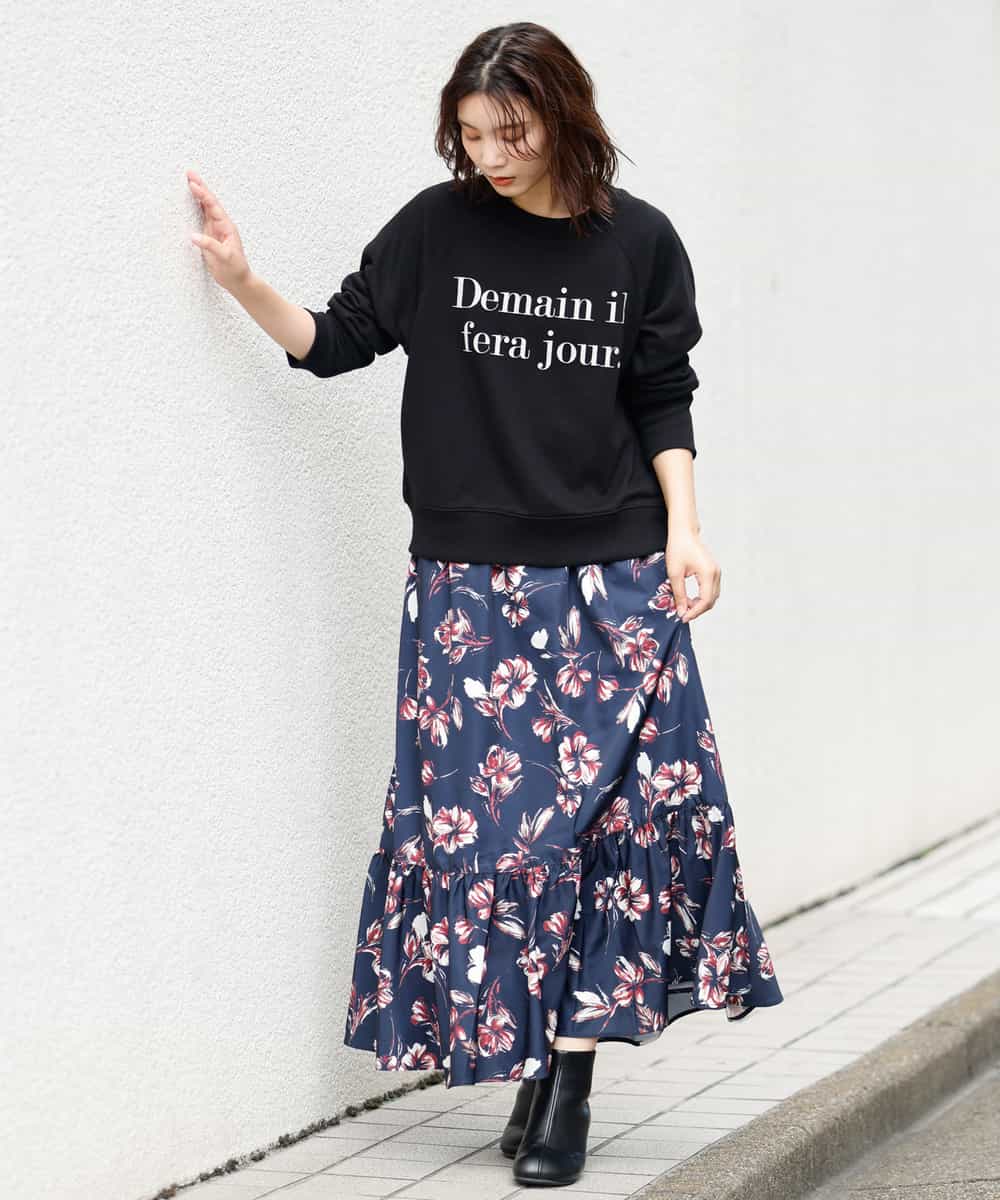 model:H162 B72 W57 H82 size:38 大人カジュアルなロゴスウェット。 シンプルで落ち着いたトーンのプリントは、 コーディネートのポイントになりながらも、 ボトムを選ばないすっきりした女性らしいサイズ感で、 汎用性抜群です。 ロゴの意味は「明日はお天気」 気分も晴れやかにというメッセージが込められています。