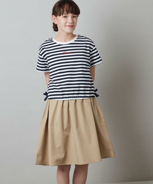 ・ベージュ・・・ボーダーの上に赤いロゴ刺繍がフレンチテイストで上品な印象。