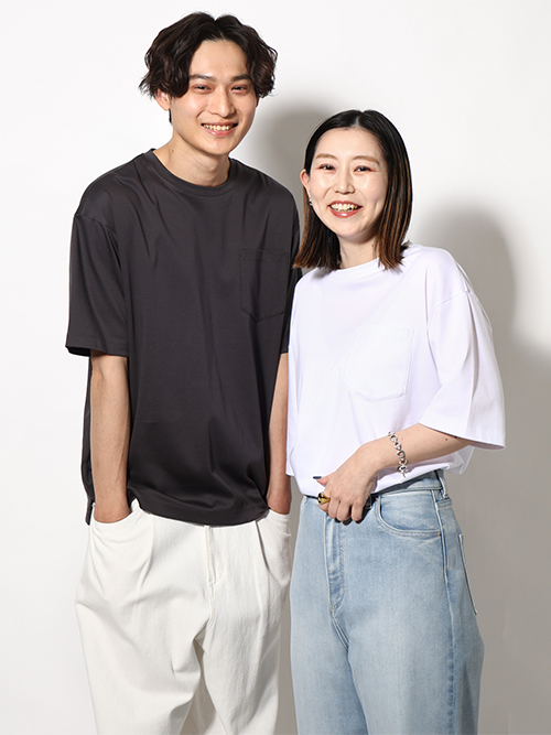 ブリーチとバイオ加工を施したアイスブルーとオフの2色展開。